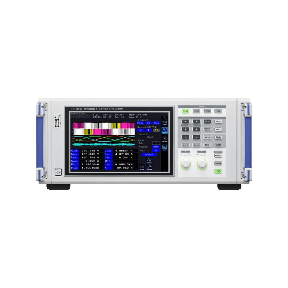 Hioki benchtop power meters and power analyzers are best in class power measuring instruments for measuring single to three-phase lines with a high degree of precision and accuracy. The PW6001 is Hioki’s flagship power analyzer, featuring high accuracy, wide band, and high stability for measuring electrical power from DC to inverter frequencies, providing maximum of 12 channels* to support single- and three-phase inverter motor system measurements and next generation devices such as silicon-carbide (SiC) inverters. *When synchronizing two 6-channel models connected via optical link