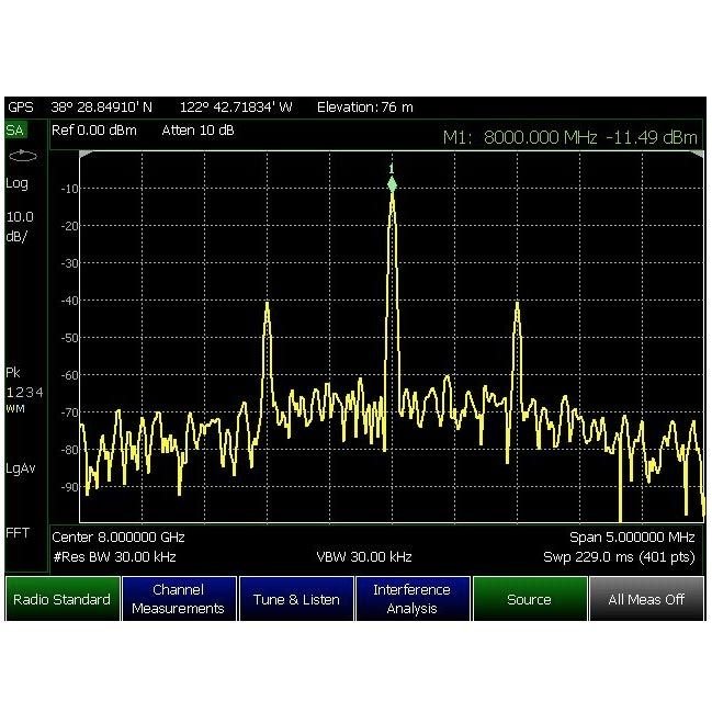 Option 233 adds a high performance, full-band spectrum analyzer including four traces, different detector types, radio standard selection and flexible limit lines. The option offers channel power measurements, AM/FM tune and listen, field strength measurements, antenna factors and frequency counter markers. Record and playback of spectrum traces feature requires Option 236 “Interference Analyzer and Spectrogram”. Tracking generator mode available (requires Option 210).