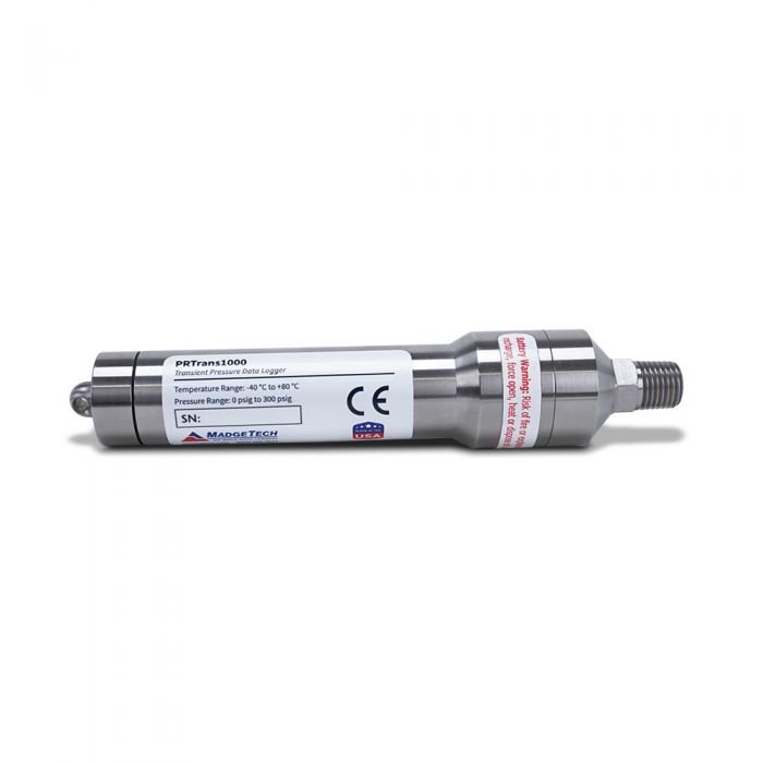 The PRTrans1000 is a submersible, transient pressure data logger with a 1/4 in. NPT fitting for quick connection. This device is available in models ranging from 30 to 5000 PSIData is sampled continuously at 100 Hz, but is only recorded when a user-programmed thresholds are met. The device can record up to 255 events and take as many as 262,143 pressure samples. The PRTrans1000 also shows up to 32 samples of “pre-trigger” data for further analysis into why the event was triggered.The PRTrans1000 is compatible with the latest MadgeTech 4 Software making starting, stopping, and downloading simple and easy. Graphical, tabular, and summary data is provided for analysis and can be viewed as customizable engineering units.